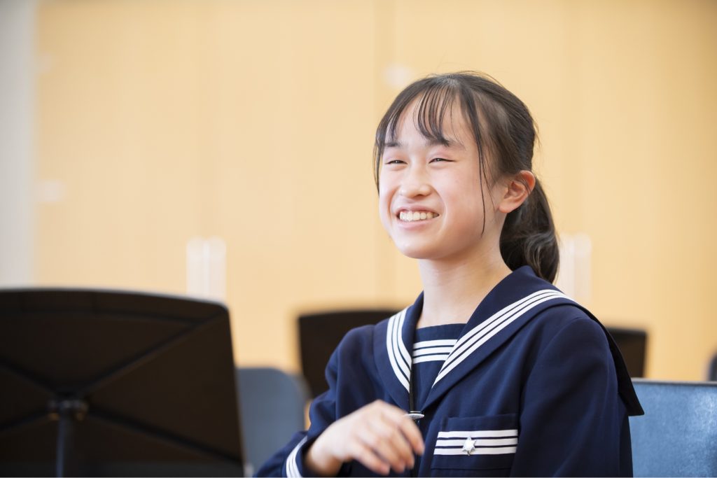 橋本さん そうですよね。入部したての中学1年の頃は同学年だけで1曲を仕上げる練習だったけど、2年生になってからは演奏する曲目も増えますし、全体合奏にも参加させてもらえるから、個人練習を頑張らないとついていけない!って思って毎日必死に頑張っています。