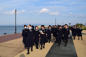 2泊お世話になった宿舎をあとにし、親水護岸に向かいセレモニーを行いました。