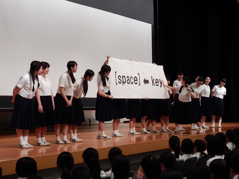 委員のバッジを交換して、全校生の前で引き継ぎをします。