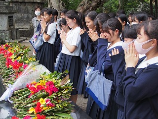 最後に、モニュメントの前でセレモニーを行い、誓いの言葉と千羽鶴を捧げました。