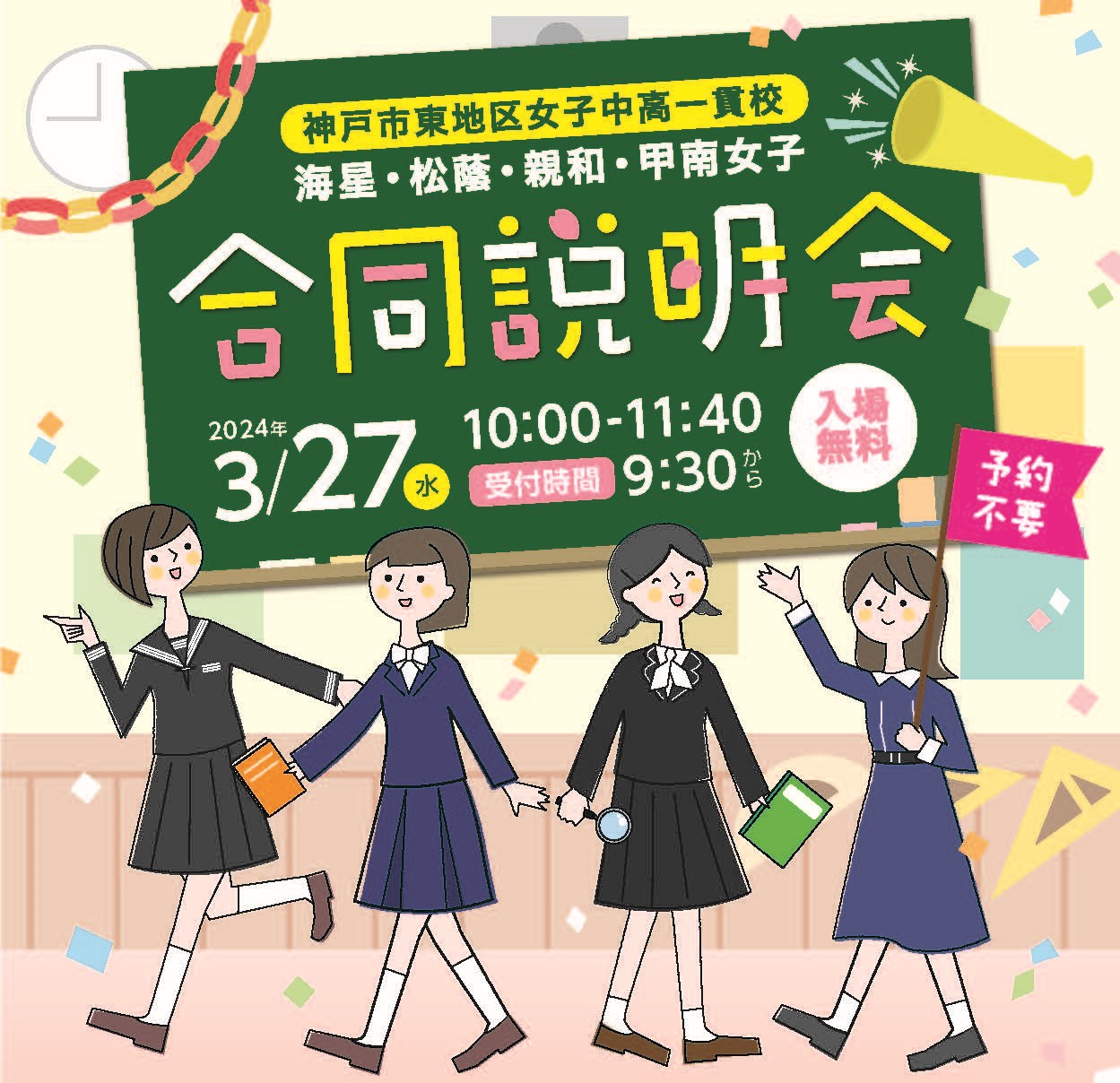 今年も、2024年3月27日(木)神戸市東地区女子中高一貫校(海星・松蔭・親和・甲南女子)合同説明会を行います。