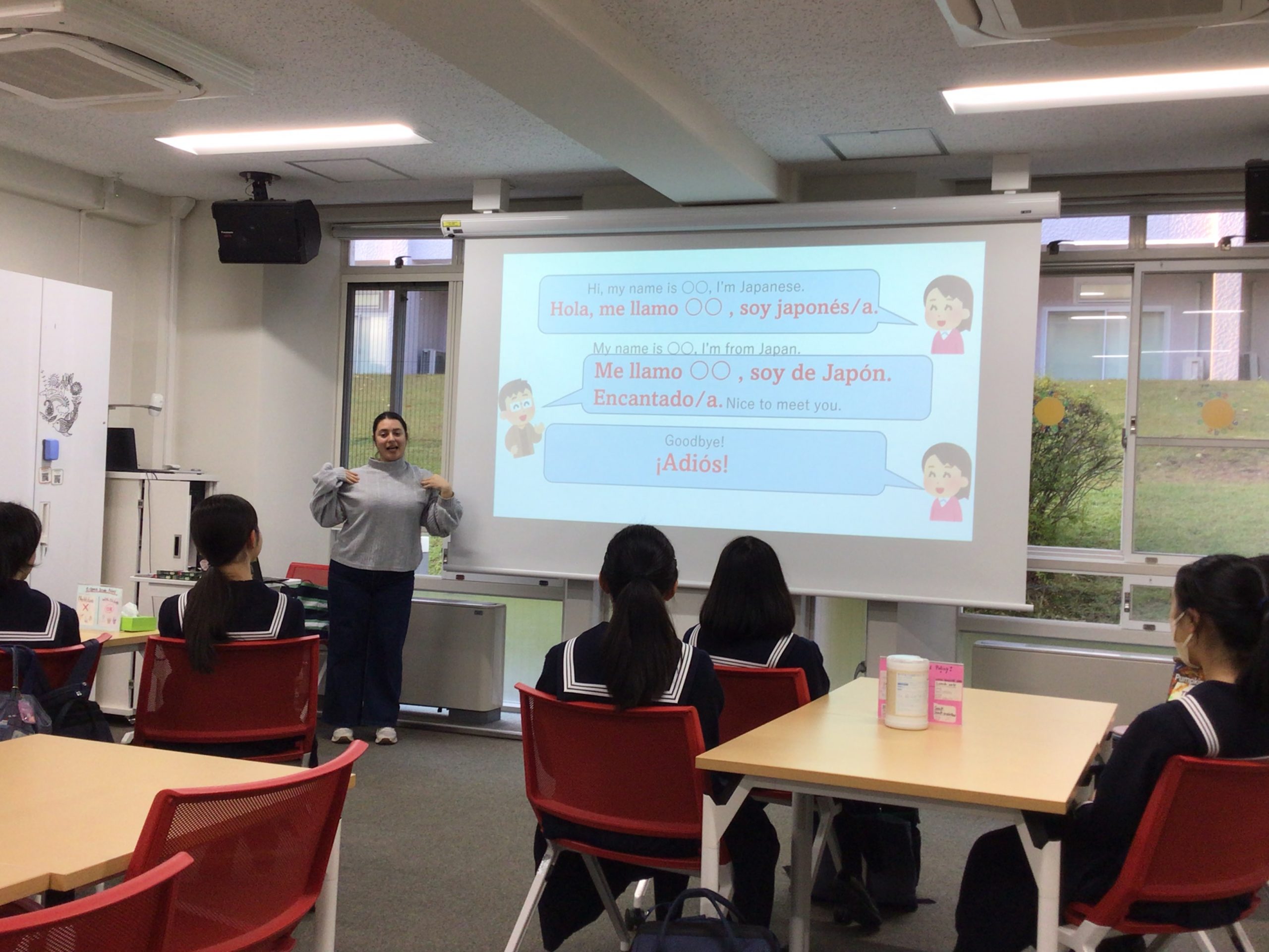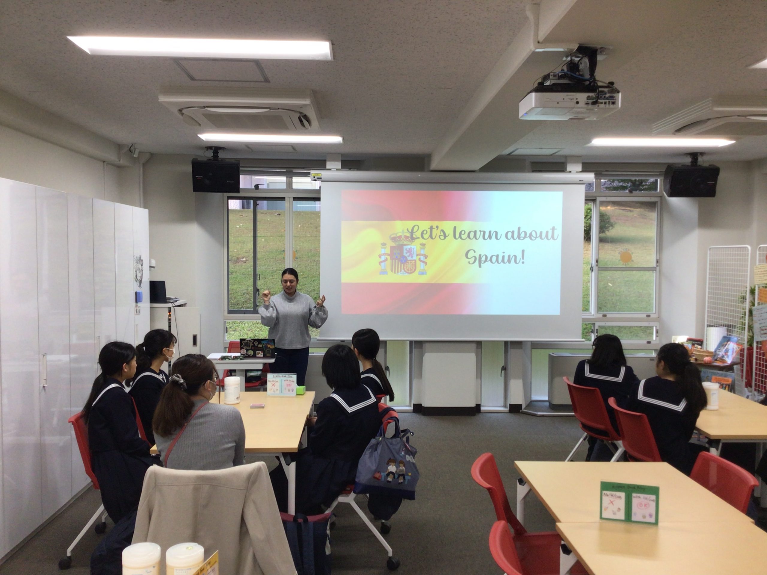 甲南女子大学e-spaceにて行われたイベントに本校生徒も参加してきました。今回はスペインの言語や文化について大学生が紹介してくれました。自己紹介や数の数え方を教わり、カードゲームを楽しみ、最後にはスペインの伝統のお菓子(手作り!)までいただいて、約1時間楽しく過ごしました。