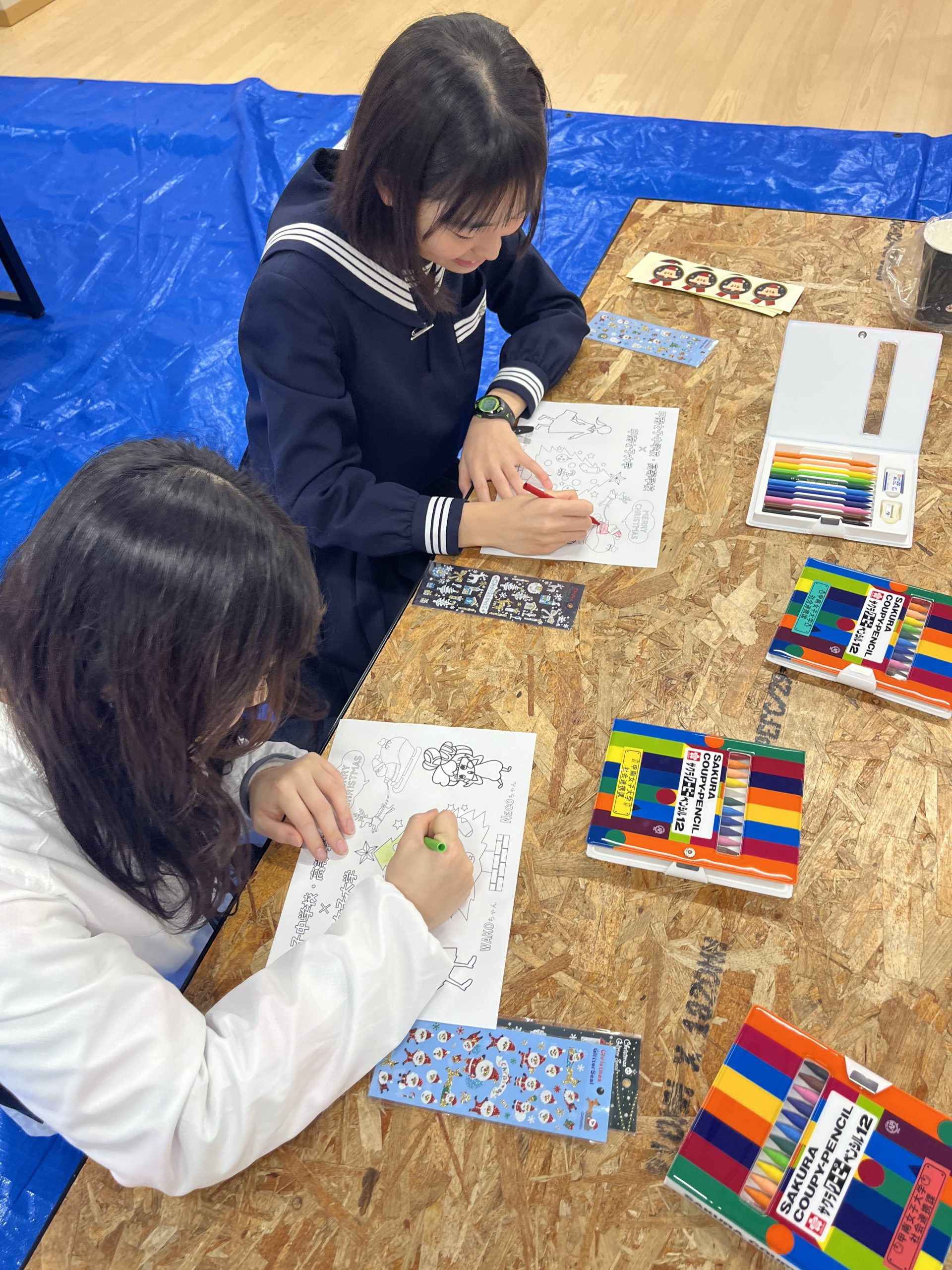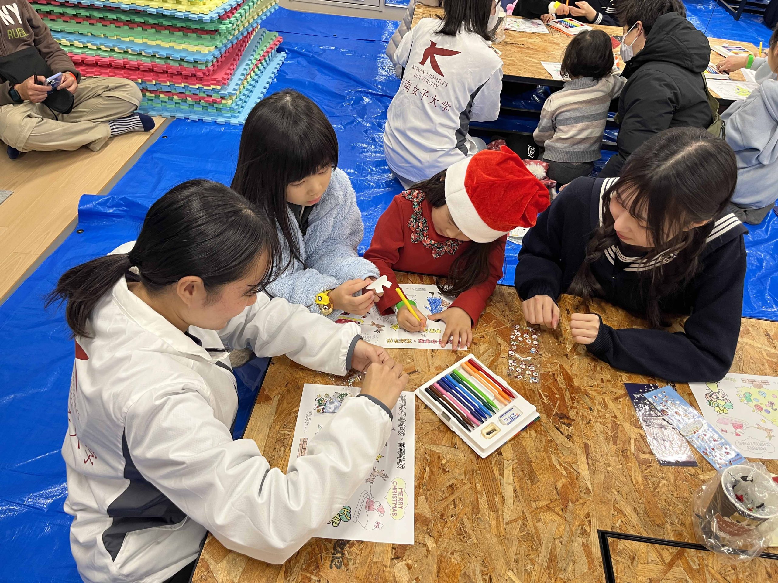 本学園からは、甲南女子大学と甲南女子中学校・高等学校が合同で、ぬり絵のワークショップを実施しました。