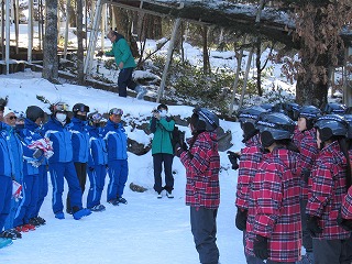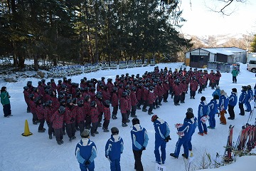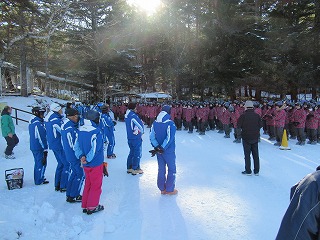スキー研修旅行2日目です。引き続き快晴のもと、開校式が行われました。