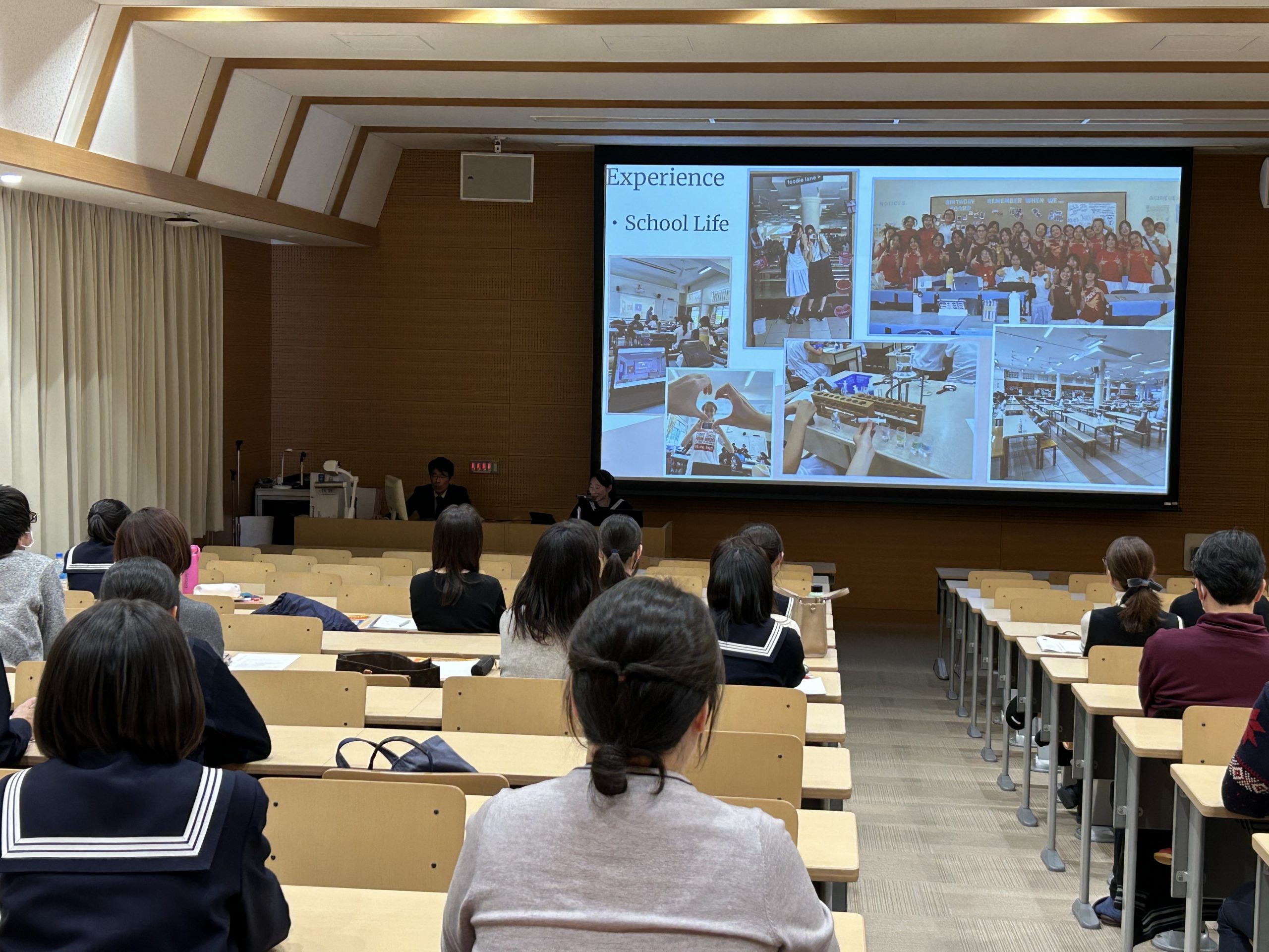 本校の留学プログラムを短期から長期まで全て紹介する説明会を21日(土)午後に開催いたしました。好評の夏期カナダ研修やオーストラリアとシンガポールとの交換留学に加え、新たにスタートしたニュージーランドとイギリスへの学期留学、そしてこの夏始まる中学3年生向けのシンガポール短期研修とニュージーランド・ワンガヌイ市との交換留学が紹介されました。各部で生徒の体験談のプレゼンも行われ、参加された生徒、保護者から大きな拍手をいただきました。また留学エージェント(EIL様、EF様)にもお越しいただき1年間の留学についてもご紹介していただきました。3時間を超える説明会だったにも関わらず、最後まで全て参加された方々も多くおられ、関心の高さを感じました。