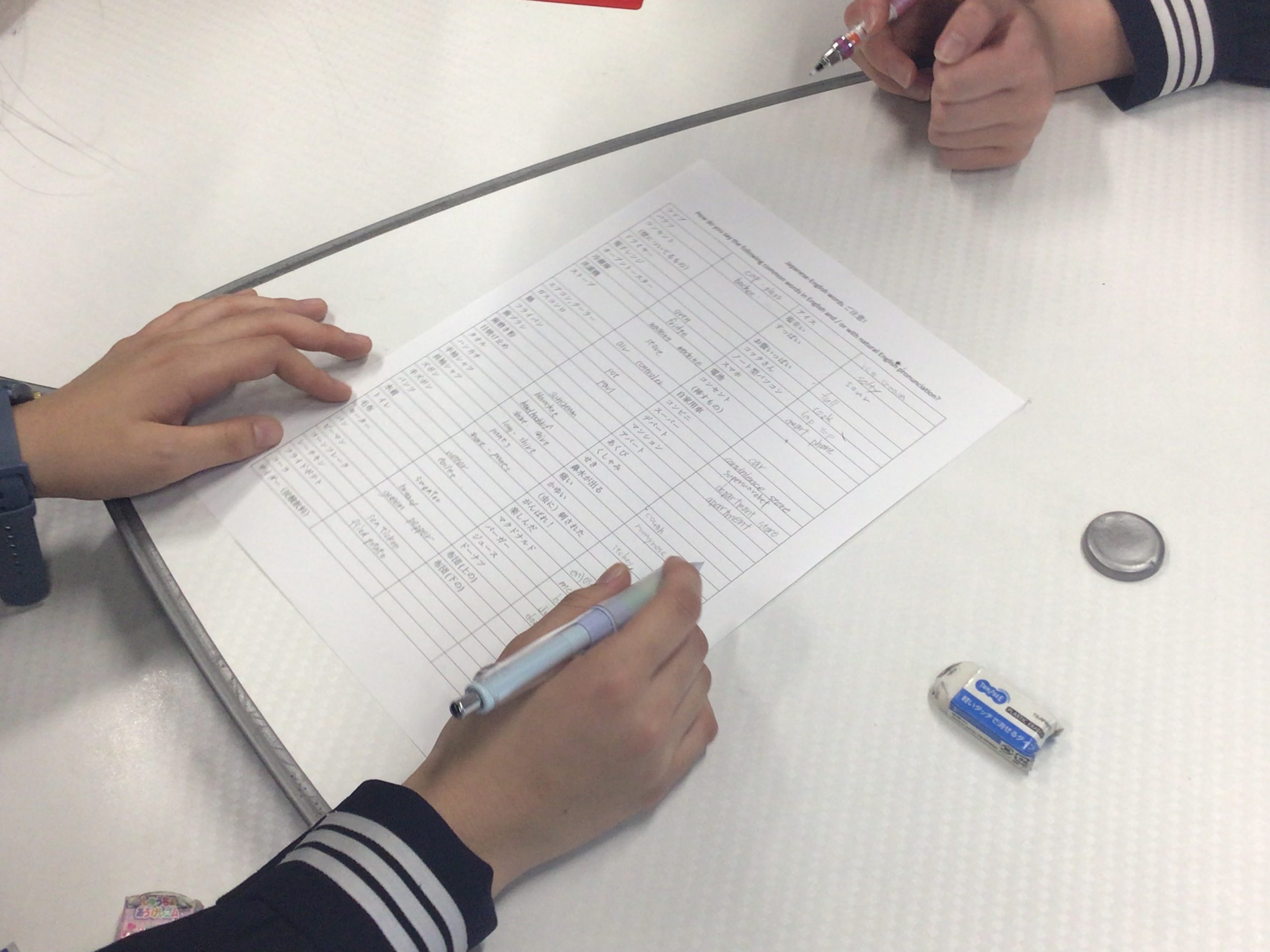 夏休みの短期留学に向けて本日第二回目の事前ミーティングを行いました。今回はカナダ滞在中に必要となる英単語のうち、特にカタカナとは意味の違うものについてグループで考えました。その後は現地で紹介もしくは披露したい活動のアイデアを出し合いました。生徒同士も学年を越えて和気あいあいと過ごしていました。