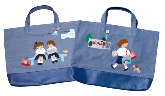 甲南女子のトレードマーク、特注デザインのデニムバッグ